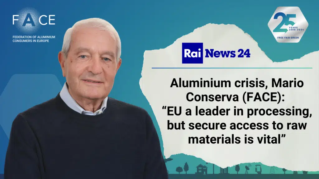 Aluminium crisis, Mario Conserva (FACE) on Rai News 24: “EU a leader in processing, but secure access to raw materials is vital”