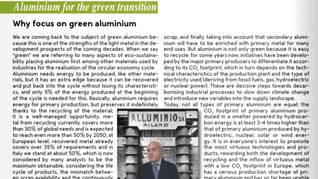 Perché puntare sull’alluminio verde Nel nuovo editoriale di A&L Alluminio e Leghe, il Segretario Generale di FACE Mario Conserva par...