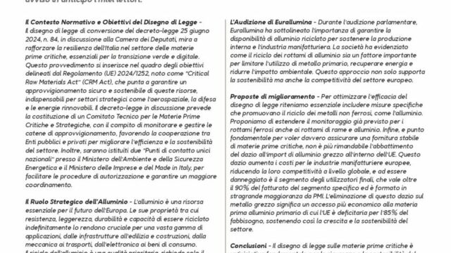 Alluminio e materie prime critiche In Italia, la recente discussione alla Camera dei deputati sulle materie prime critiche di interesse strateg...