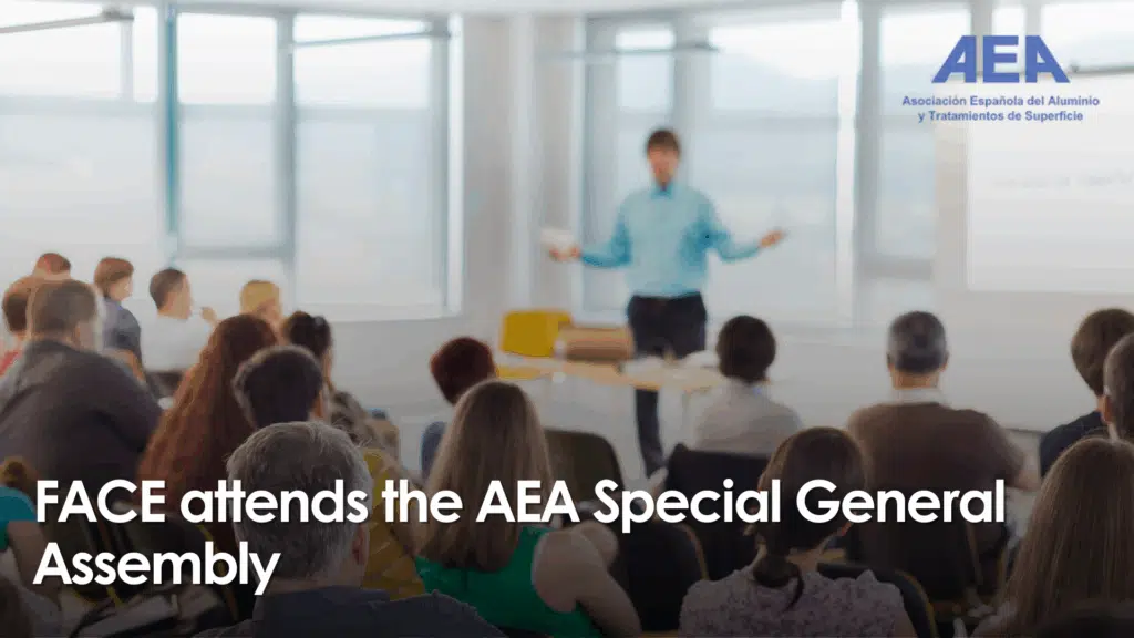 On Thursday 13 November 2025, FACE will attend the Special General Assembly of AEA – Asociación Española del Aluminio y Tratamientos de Superficie. In a moment of particular significance for the future of the sector, the strategic objectives for 2026 will be presented during the meeting.