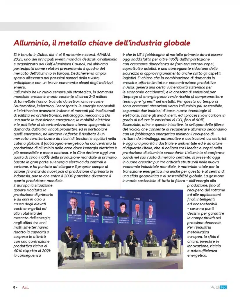 La sfida per l’industria dell’alluminio in Europa è chiara: investire in innovazione, riciclo e autosufficienza energetica per restare competitivi in un mercato globale sempre più complesso.
