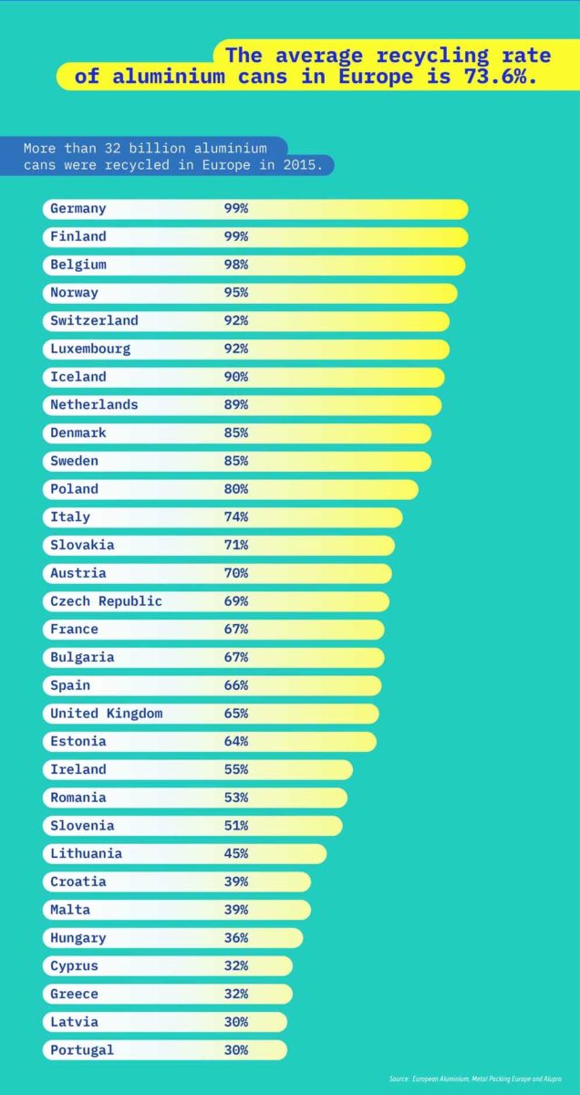 The think tank Green Alliance called on the UK government to be more ambitious in its overhaul of recycling system and achieve a 100 per cent aluminium recycling rate. In its latest research, Green Alliance estimates that doubling the current recycling rate could save the country £50 million (EUR 58 million) of wasted aluminium each year, cut carbon dioxide emissions, and create jobs in the recycling industry.